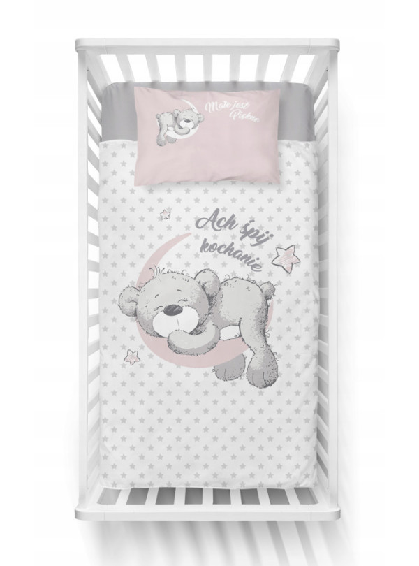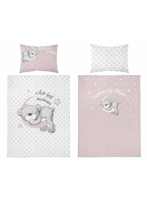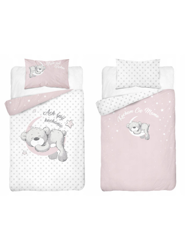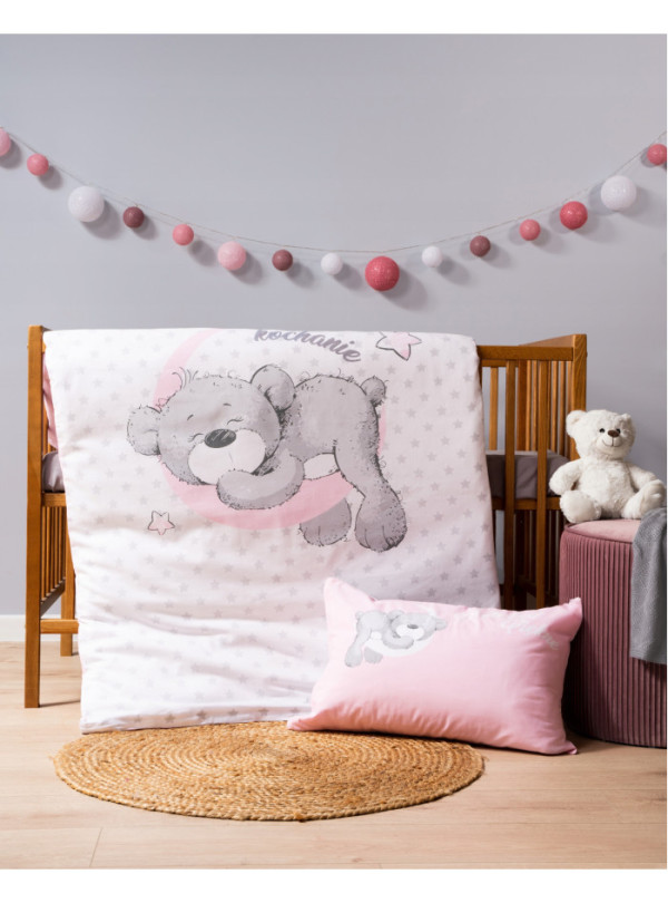 POŚCIEL DO ŁÓŻECZKA 100x135 DLA DZIECI MIŚ RÓŻOWA - KOD:59