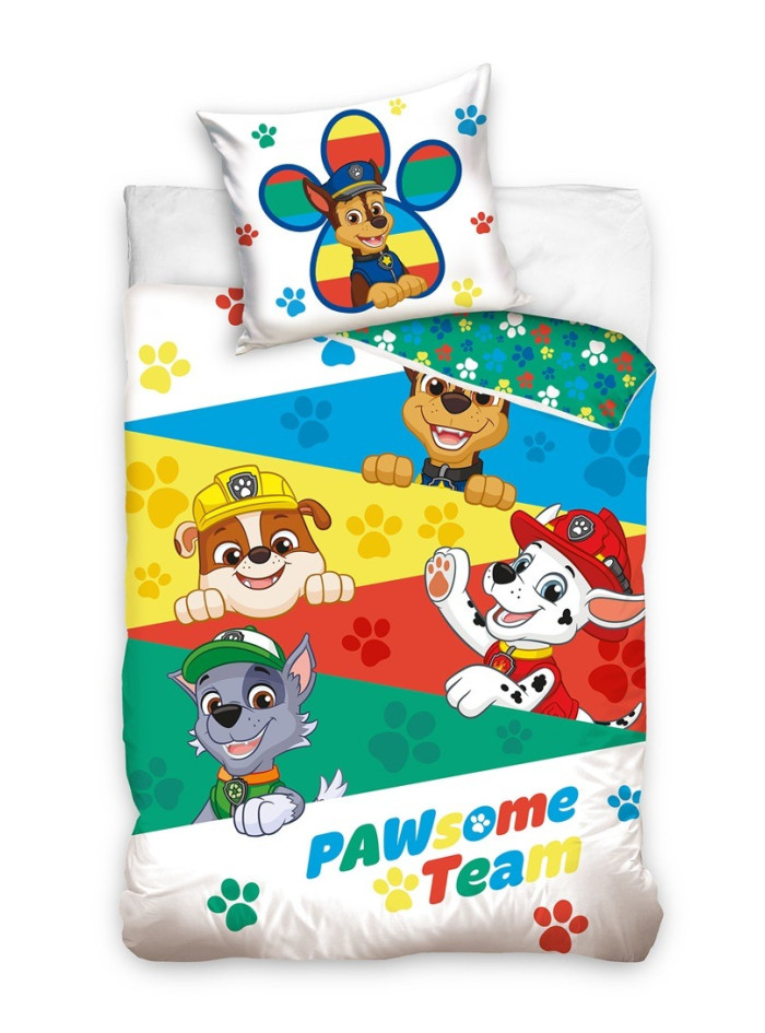 Komplet pościeli z ulubionymi bohaterami bajki Psi Patrol z pewnością uatrakcyjni wygląd pokoju każdego maluszka