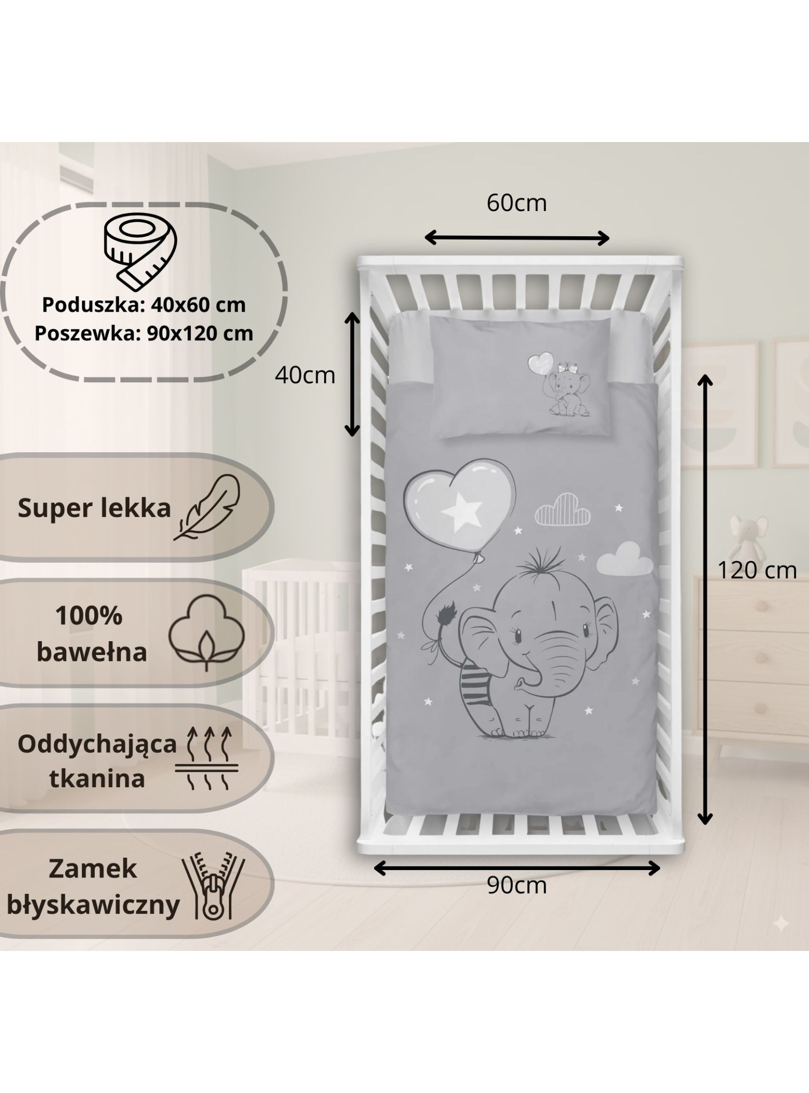 ✅ Pościel z słodkimi słoniątkami zachwyci Twoją pociechę.