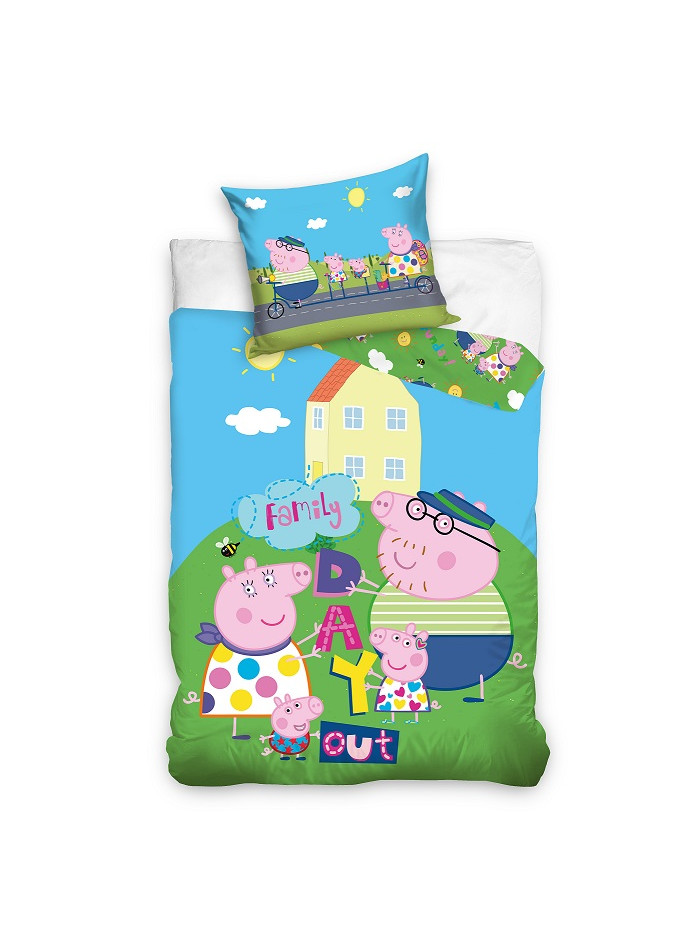 POŚCIEL DO ŁÓŻECZKA 100x135 DLA DZIECI ŚWINKA PEPPA GEORGE MAMA TATA ŚWINKA - KOD:903